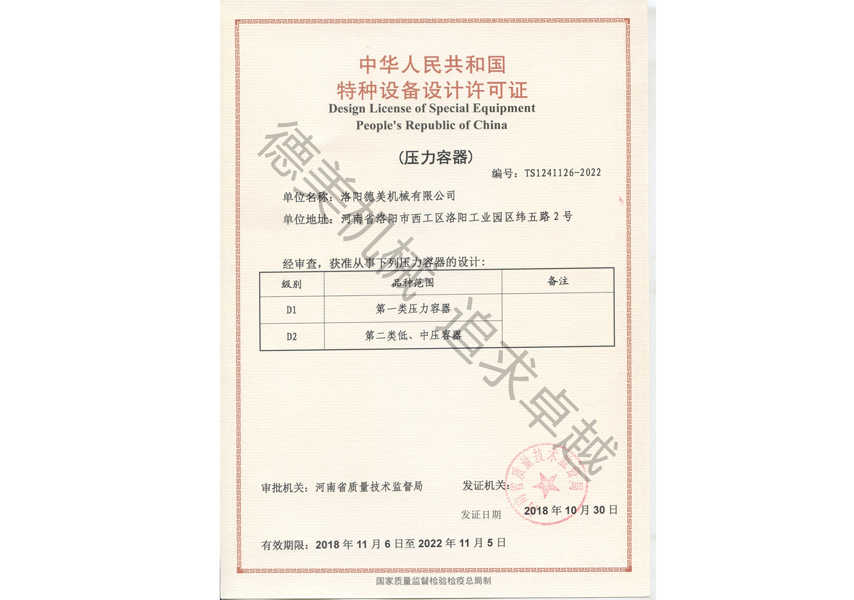 - 2020-08-29 特種設(shè)備設(shè)計許可證