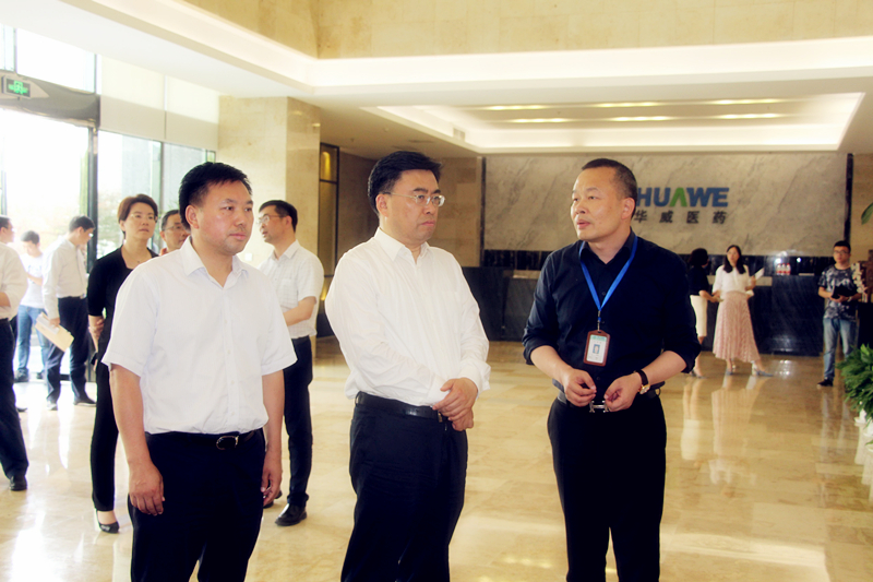 2018年6月5日,江蘇省南京市市委常委、常務(wù)副市長、市委秘書長楊學(xué)鵬,市政府副秘書長唐建榮,市政府辦公廳副主任陳友明,在南京市棲霞區(qū)委書記邢正軍、常務(wù)副區(qū)長錢維等領(lǐng)導(dǎo)陪同下調(diào)研考察華威醫(yī)藥集團(tuán)。華威醫(yī)藥集團(tuán)董事長張孝清陪同接待,并對華威醫(yī)藥發(fā)展和未來戰(zhàn)略規(guī)劃進(jìn)行了匯報(bào)。