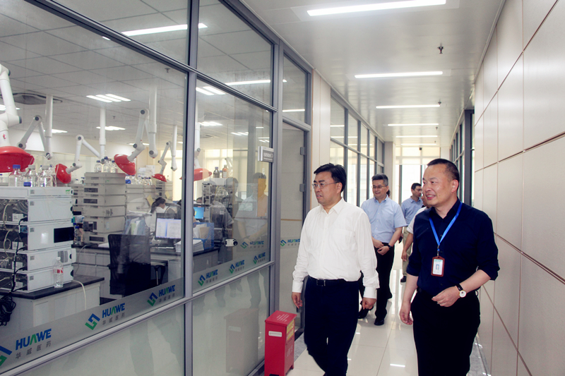 調(diào)研中,楊市長認(rèn)真聽取了華威醫(yī)藥集團(tuán)董事長張孝清對公司發(fā)展規(guī)劃、技術(shù)平臺、創(chuàng)新體系及研發(fā)系統(tǒng)建設(shè)管理情況的介紹,詳細(xì)詢問了企業(yè)在推進(jìn)科技和體制機(jī)制創(chuàng)新等方面的經(jīng)驗(yàn)做法,并對華威醫(yī)藥研發(fā)團(tuán)隊(duì)的人員、學(xué)歷構(gòu)成、科研人員福利待遇等情況進(jìn)行進(jìn)一步了解。楊市長對華威醫(yī)藥集團(tuán)在國內(nèi)藥品研發(fā)細(xì)分領(lǐng)域保持領(lǐng)先地位予以贊賞,對華威醫(yī)藥集團(tuán)研發(fā)中心的科技創(chuàng)新體系、新藥研發(fā)工作取得的成就表示了充分的肯定和欣賞。