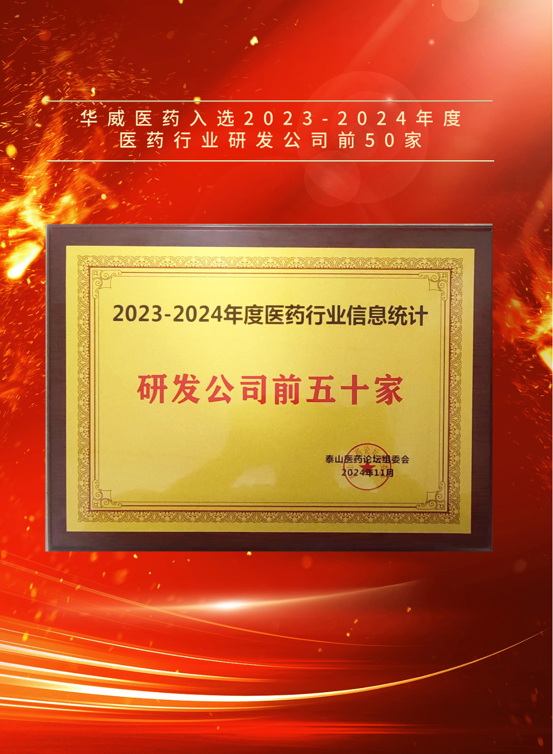 喜報(bào)!華威醫(yī)藥入選“2023-2024年度醫(yī)藥行業(yè)研發(fā)公司前50家”